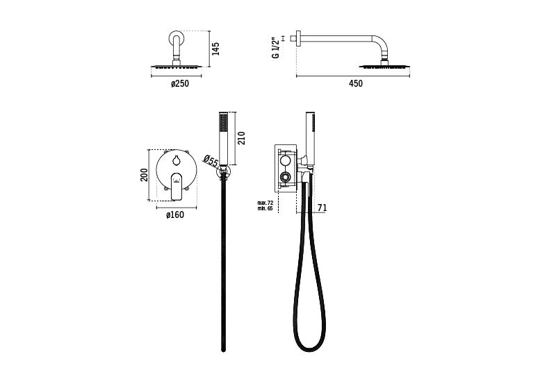 Kit de ducha Luso empotrado circular con 4 vías