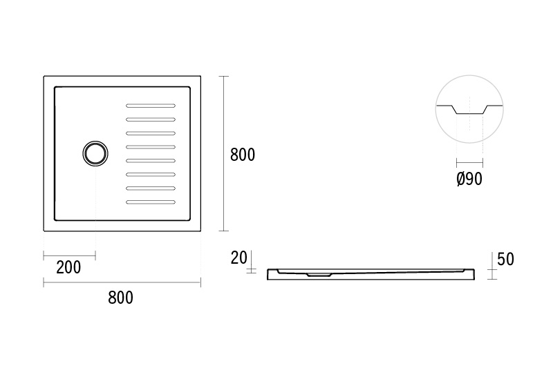 Base de duche Piano de encastrar quadrangular antiderrapante